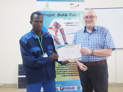 Dans le cadre du projet PartnerAfrika de la Chambre des métiers de Cologne, en coopération avec des organisations partenaires au Sénégal, le perfectionnement de compétences des formateurs qualifiés dans les domaines des énergies renouvelables et de l'efficacité énergétique doit être renforcée. L'objectif est de promouvoir des structures de formation durables qui répondent aux exigences croissantes du secteur des énergies vertes.